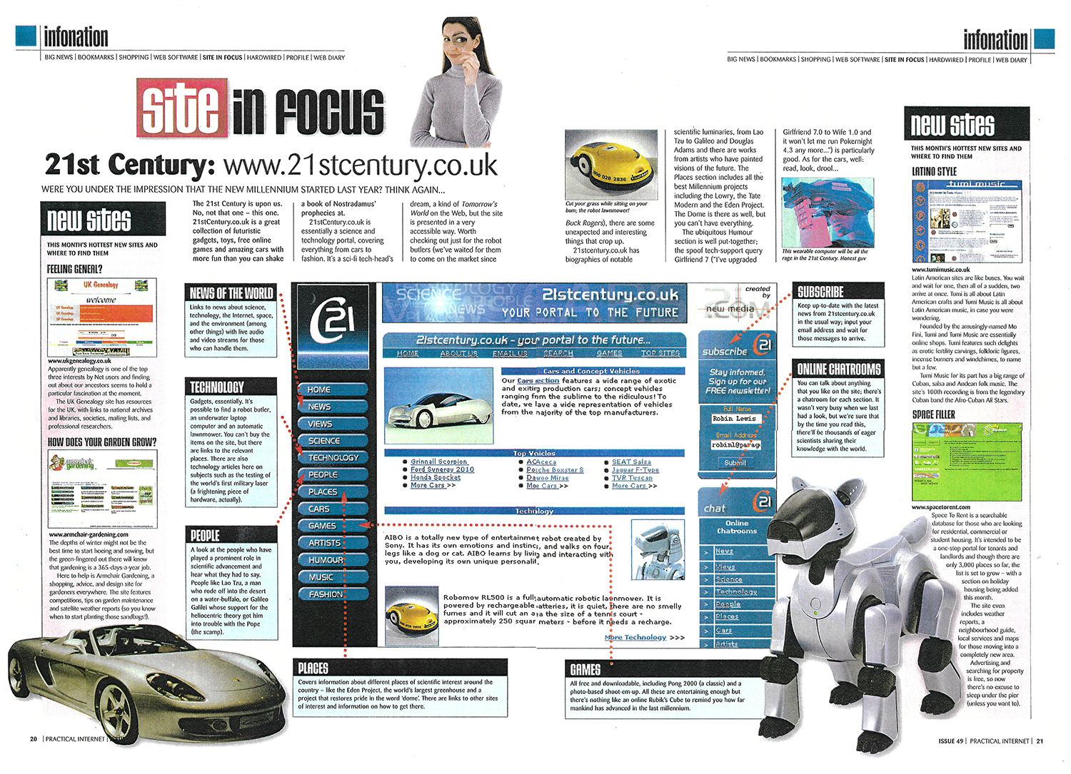 Way back in the late 90's and into the new millennium, Clifford's award-winning Science and Technology website 21st Century was a smash-hit of the .com boom, attracting over 7 million visitors a year and featured in all of the top UK magazines, including the biggest and brightest of them all, Future Publishing's .net magazine...